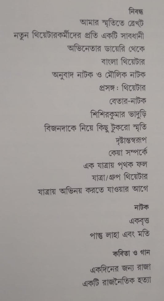 গণনাট্যের যুগ থেকে তাঁর নাট্যজীবনে অজিতেশ বন্দ্যোপাধ্যায় (১৯৩৩-১৯৮৩) নাটক কম লেখেননি, বিশেষত বিদেশি নাটকের বাংলা রূপান্তর। ফরাসি স্যাটায়ার অবলম্বনে 'এই বাড়ি বিক্রয় হইবে', 'জলছবি', শেক্সপিয়রের 'টেমপেস্ট'-এর অনুবাদ–এসব নাটক কোথায় তার কোনো হদিশ নেই। এ ছাড়াও অজিতেশের নাটক ও যাত্রা নিয়ে বেশ কিছু লেখা ছড়িয়ে ছিল নানা পত্রপত্রিকায়। সেই অগ্রন্থিত লেখাগুলি...Regular price Rs. 316.00Regular priceUnit price perRs. 395.00Sale price Rs. 316.00Sale -